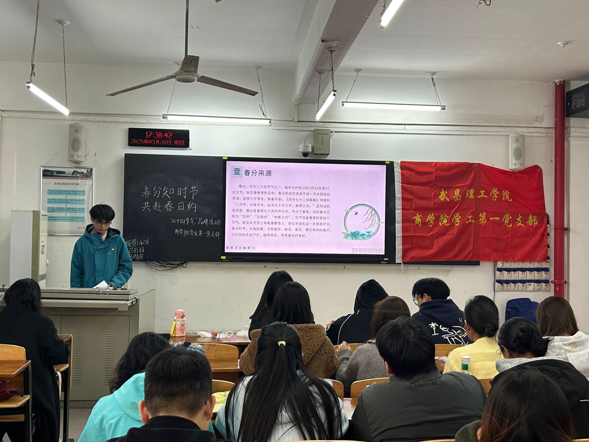 春分至,万物生。为传承和弘扬中华优秀传统文化,yl6809永利官网集团yl6809永利集团学生第一党支部于2025年3月20日17时30分在yl6809永利集团302教室成功举办了“文韵铸魂·中华传统文化深耕计划——二十四节气·春分”品牌特色活动,活动在浓厚的文化氛围中拉开帷幕。
