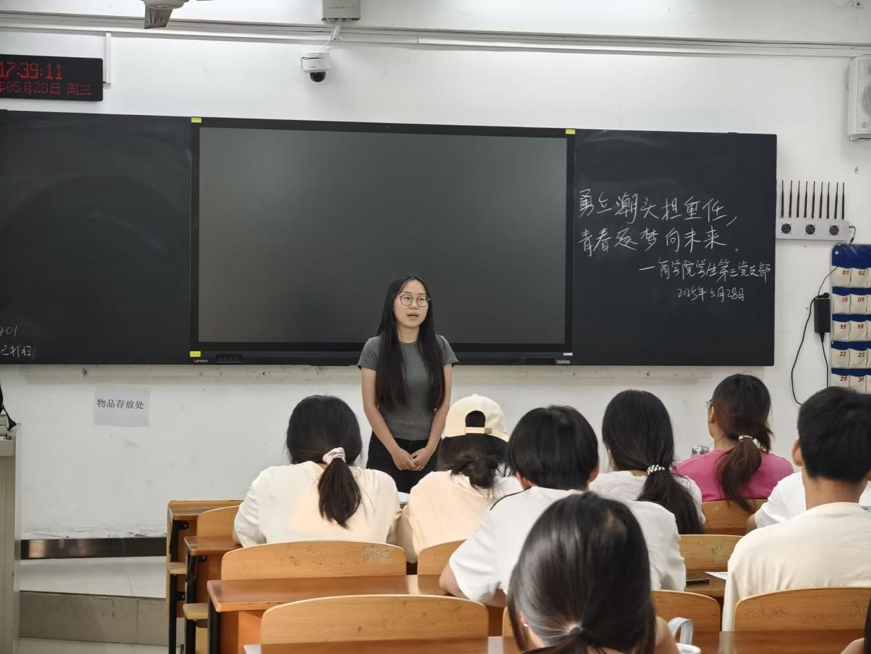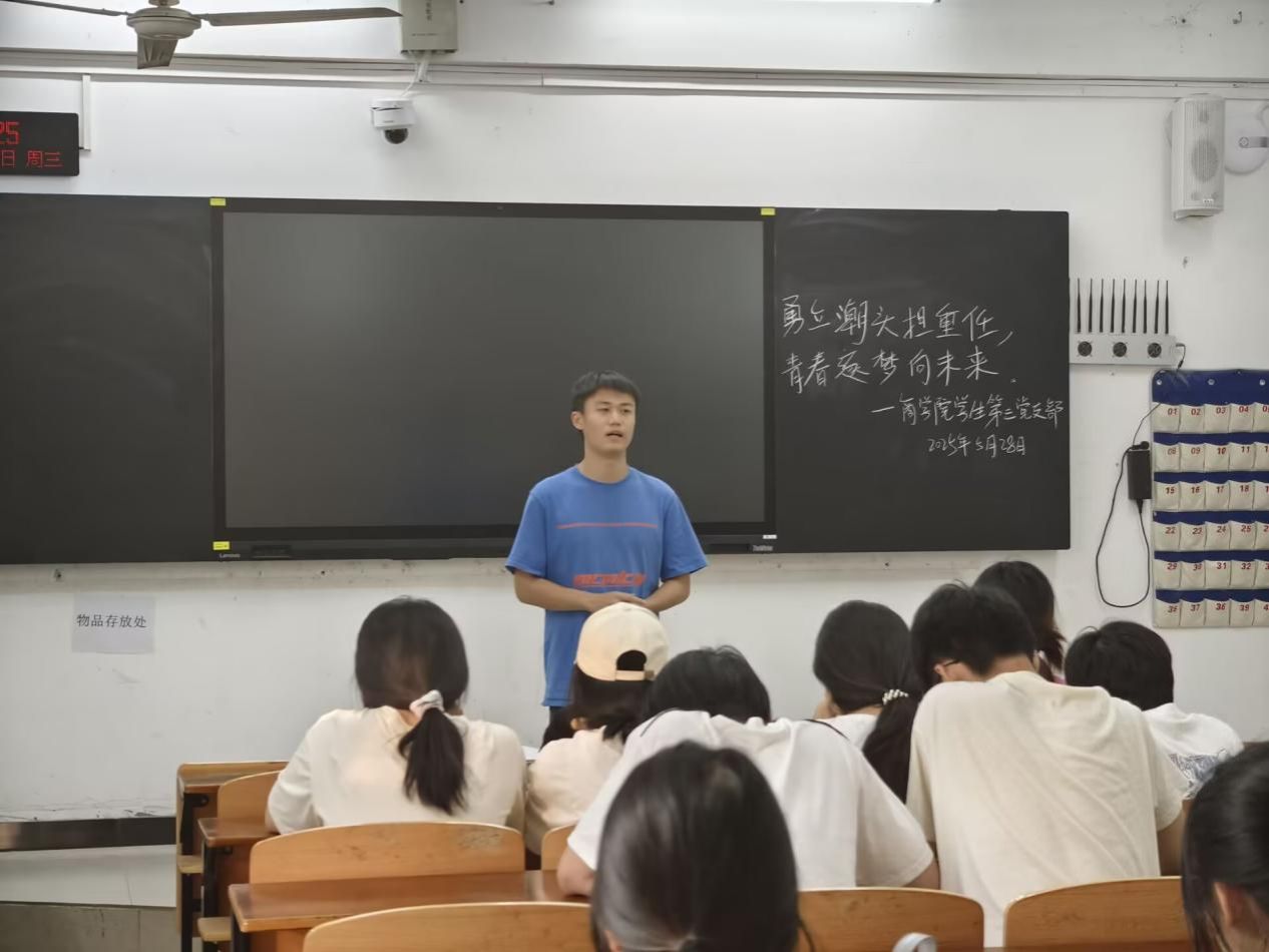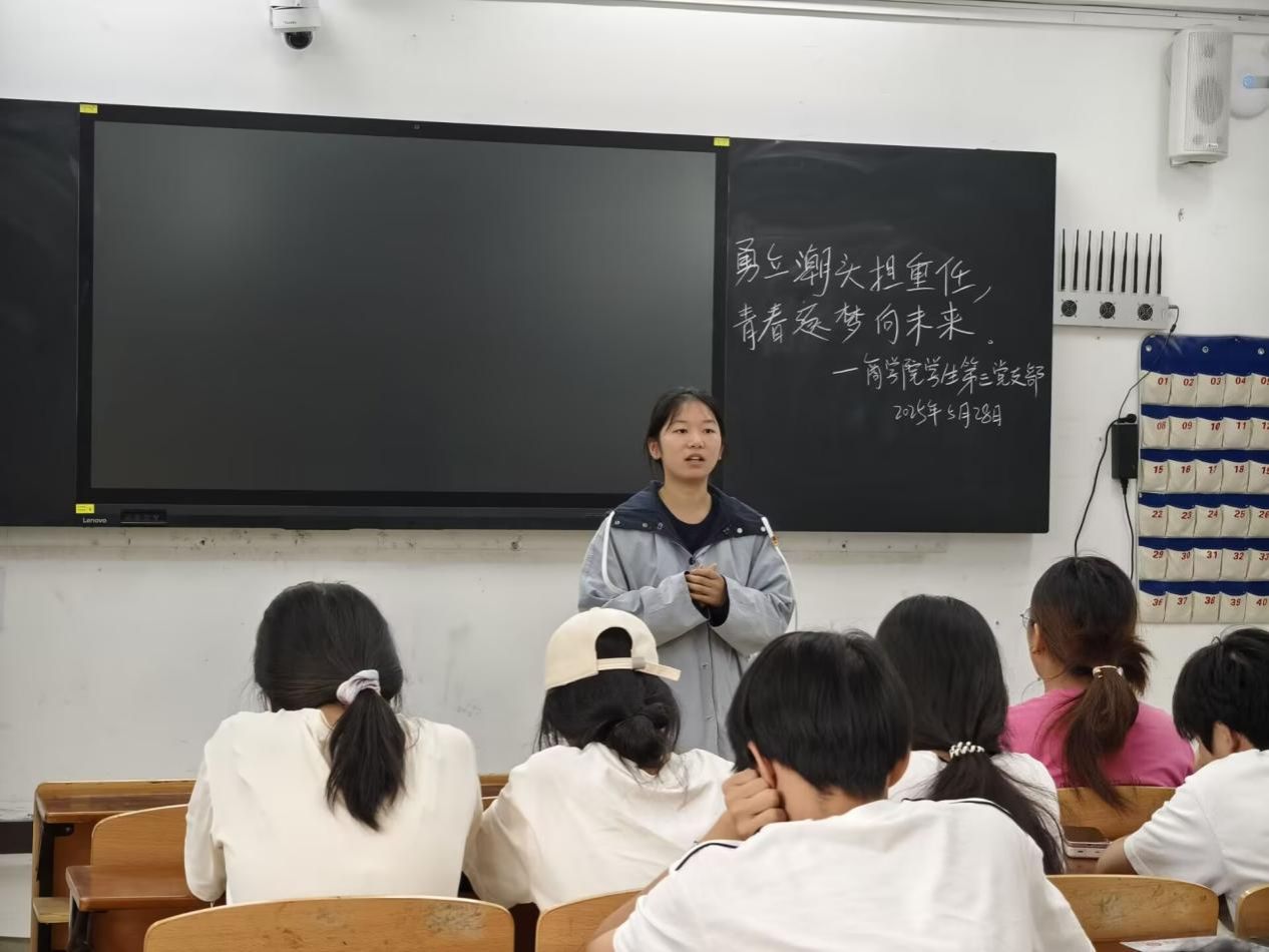2025年5月28日17时30分,yl6809永利集团学生第三党支部在yl6809永利集团304教室开展了以“勇立潮头担重任,青春逐梦向未来”为主题的党日活动。本次活动旨在增强党员们的责任感与使命感,激励大学生党员在新时代的浪潮中勇于担当,积极作为,为实现中国梦贡献青春力量。