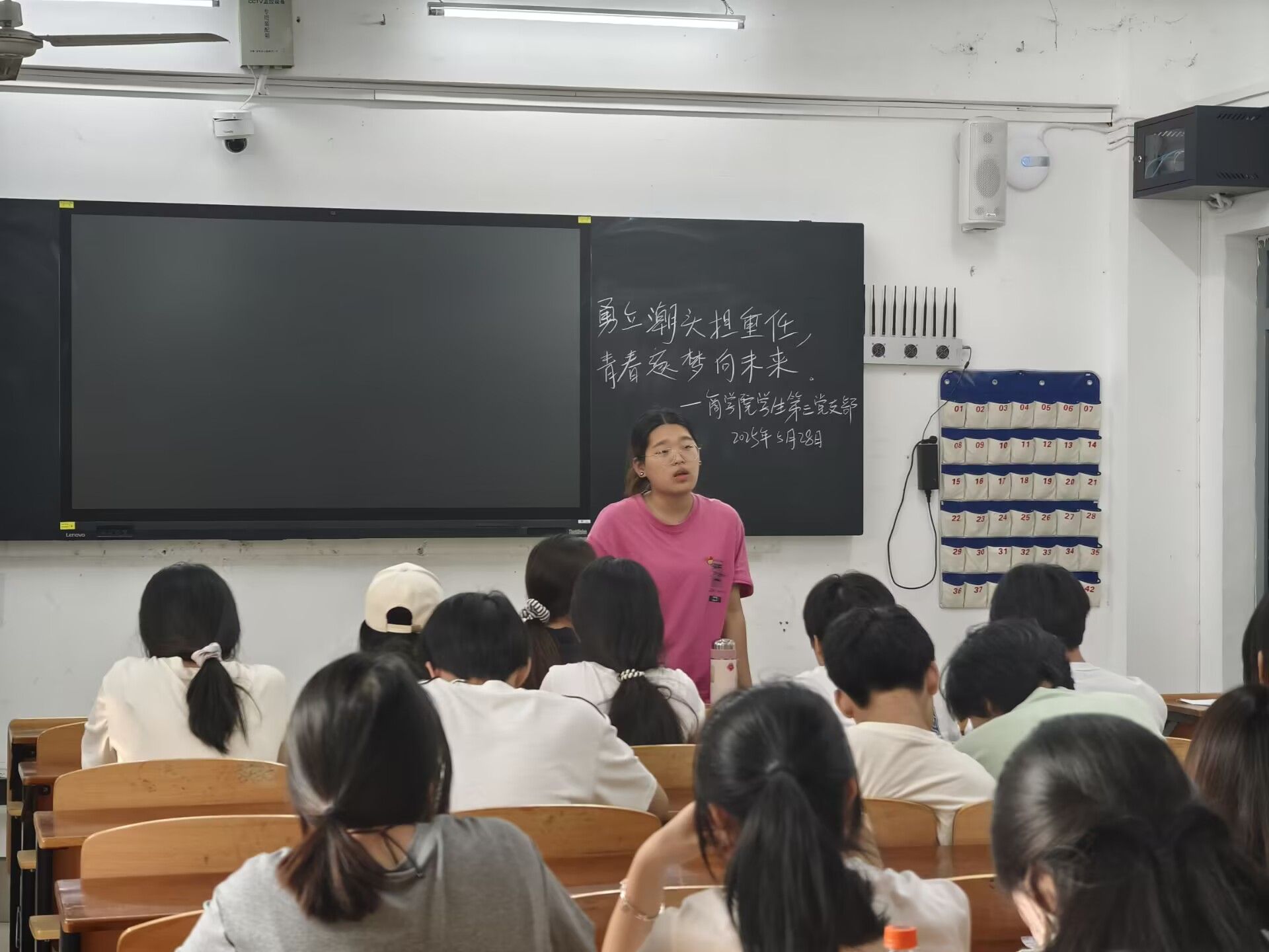 随后,同志们积极上台发言,分享自己对“勇立潮头担重任,青春逐梦向未来”这一主题的深刻感悟。其中,来自人资2202班的岳小玉同志表示:“勇立潮头,意味着要敢于突破传统、勇于创新,在学术研究和社会实践等方面发挥先锋模范作用。担起时代重任,则要求我们将个人理想融入国家发展大局,以实际行动践行社会责任。作为积极向党组织靠拢的青年,我们应当以实际行动践行社会责任,成为国家和民族的脊梁。”