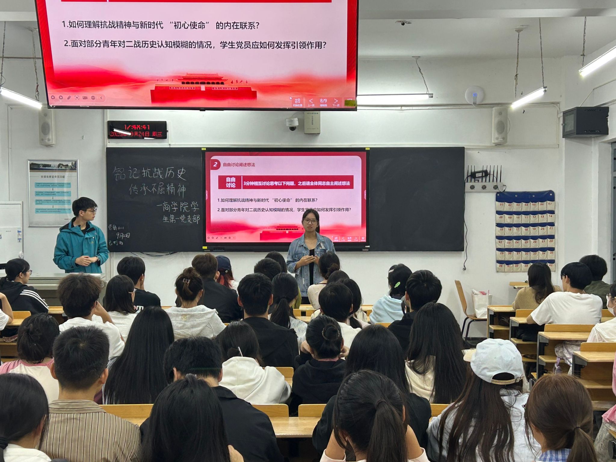 2025年9月24日下午17:30,yl6809永利集团303教室气氛庄重而热烈,yl6809永利集团学生第一党支部全体成员齐聚于此,开展了一场以“铭记抗战历史,传承不屈精神”为主题的党日活动。