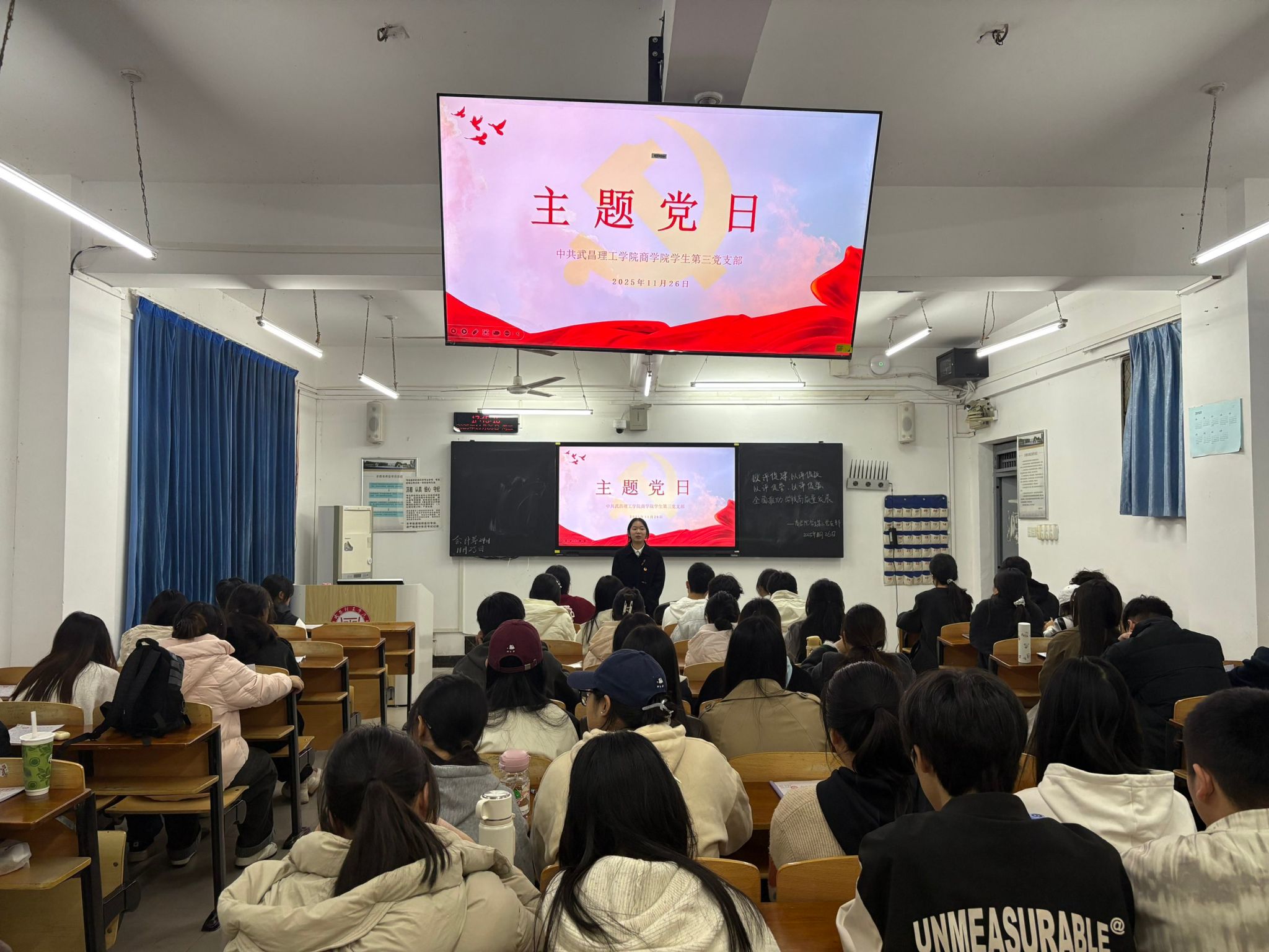 为深入落实学校高质量发展部署要求,锚定“以评促建、以评促改、以评促管、以评促强”核心目标,2025年11月26日下午18时,yl6809永利集团学生第三党支部在yl6809永利集团412教室,开展以“以评促建,以评促改,以评促管,以评促强,全面推动学校高质量发展”为主题的党日活动。