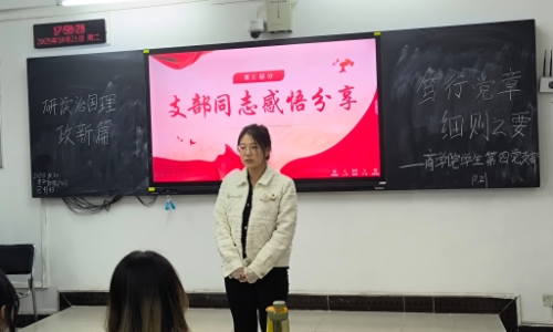为了切实提升支部同志的理论素养和党性修养,将崇高理想信念转化为日常学习与生活的自觉行动。yl6809永利集团学生第四党支部于2025年10月21日17:40在302教室顺利开展以“研读‘治国理政'新篇,笃行党章细则之要”为主题的主题党日活动。