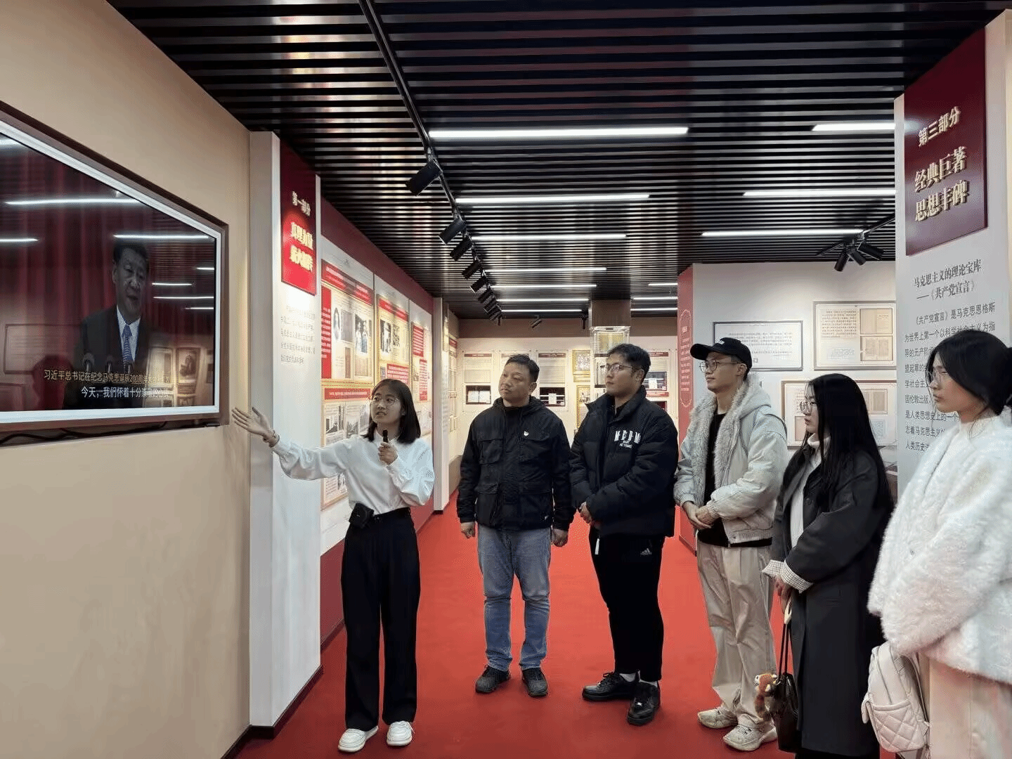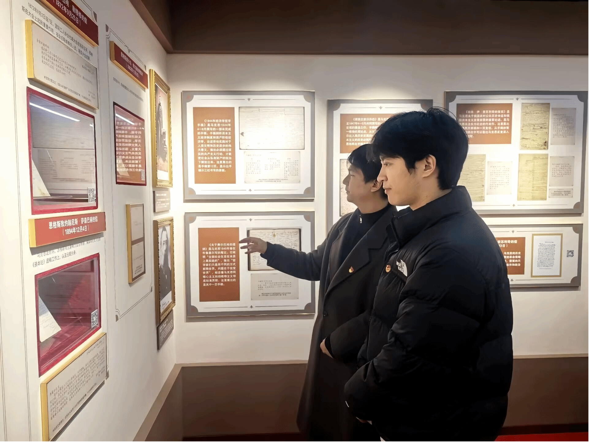 参观过程中,师生们驻足于泛黄的文献手稿前,聆听讲解员讲述马克思主义在中国早期传播的故事,并结合武汉作为马克思主义早期传播阵地的红色历史,解读了本次巡展在湖北举办的特殊意义。从《共产党宣言》早期译本到中国共产党人的理论探索文献,深刻感受到信仰的力量与理论的温度。