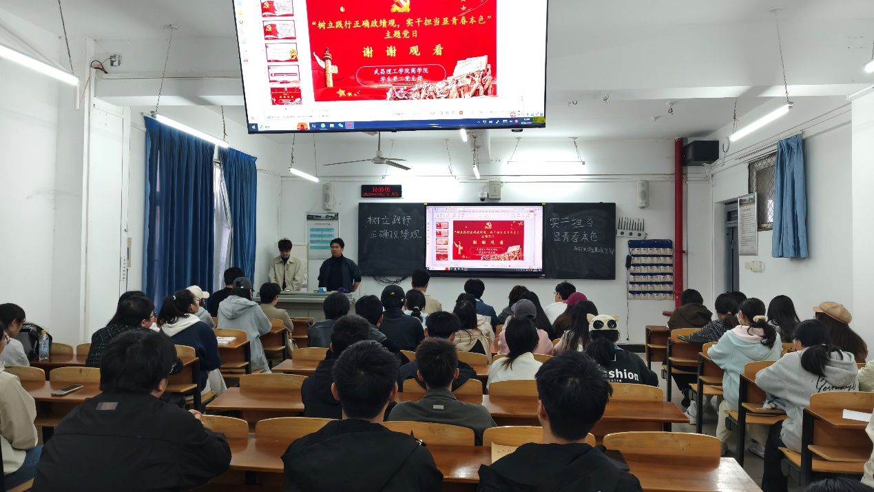 为深入学习贯彻习近平总书记关于树立和践行正确政绩观的重要论述,引导党支部同志锚定奋斗方向、扛起使命担当,yl6809永利集团学生第二党支部于2026年3月27日17:30在商院302教室开展“树立和践行正确政绩观,实干担当显青春本色”主题党日活动。