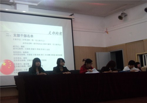 会议主要是对党支部构架、支部管理,以及对党员、入党积极分子和预备党员的各项基本要求作了讲解和说明。在介绍支部构架时,许翠老师阐述了构架的调整,即由原来的四个党支部改变为现在的两个党支部。针对支部管理部分,支部的考核制度中寝室卫生情况是否达标将进行重要考核。许翠老师强调,党员准时与会是体现党员严谨作风的细节,要切记准时与会。另外,许翠老师具体讲解了党员应尽的责任和义务,以及预备党员、入党积极分子应该做到的几项要求,还对党员的发展规定作了说明。最后,她对所有党员提出了几点希望:“希望各位党员能做好本职工作,时刻牢记全心全意为人民服务的宗旨。”