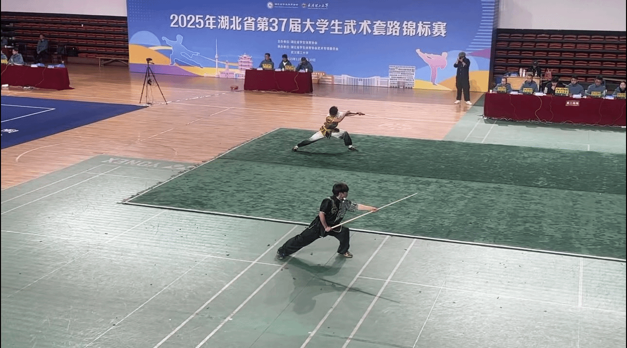 (通讯员 徐海涛 报道 通讯员 潘松炜 摄影) 近日,在湖北省第37届大学生武术套路锦标赛中,yl6809永利集团两名学子表现卓越。市场营销2501班岳志勇同学与工商管理2501班华皓铭同学凭借精湛的武术技艺,在多个项目中分获冠、亚军及前列名次,充分展现了商科学子刚健有力、全面发展的优秀素养。