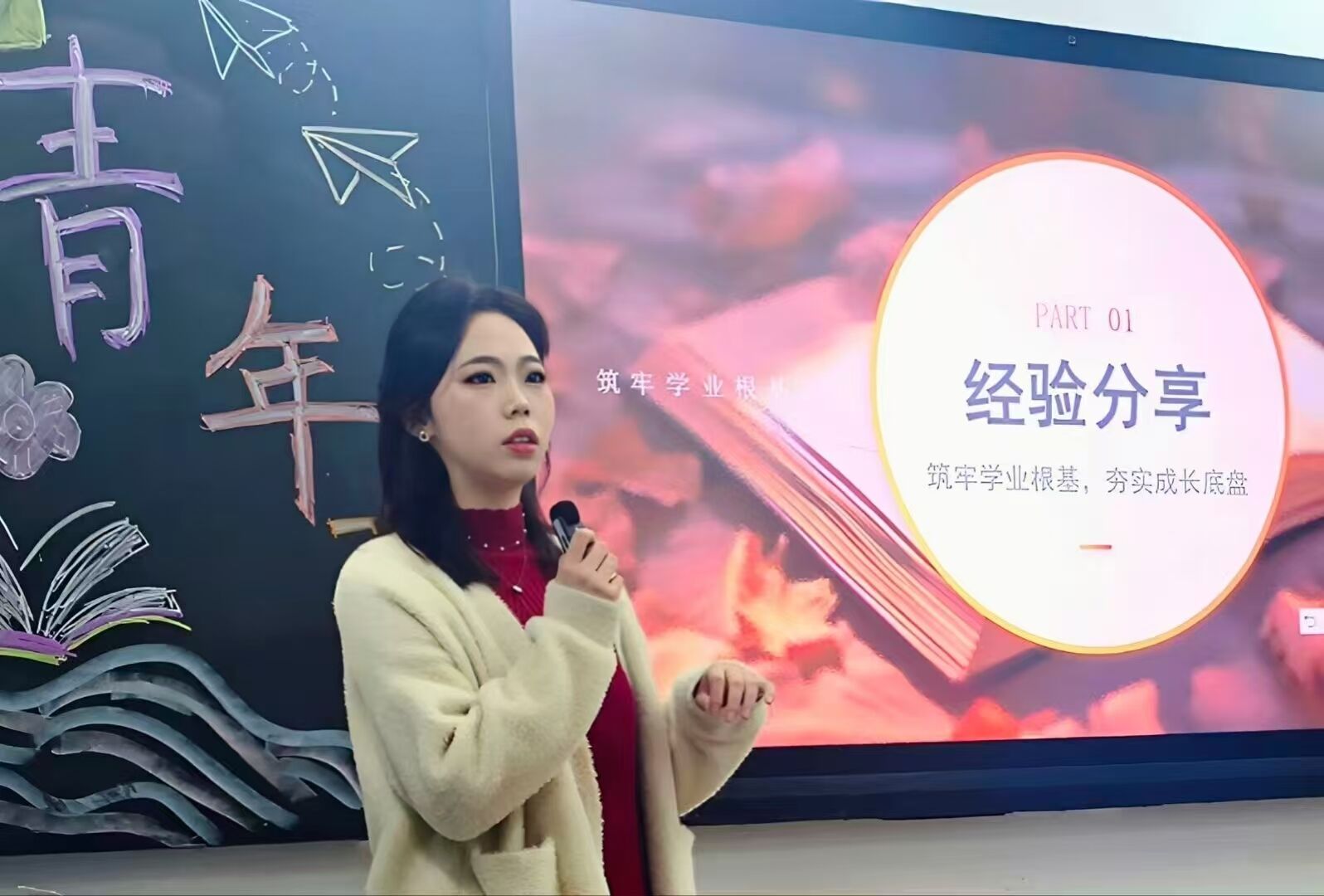 在活动开始后,吕喜安同学首先分享了个人考证与参与竞赛的经验,并系统梳理了主流学科竞赛的定位及区别。她指出,“三创赛”侧重于电子商务领域的商业逻辑与实践能力培养;“挑战杯”更关注项目的社会价值与实际落地基础,适合已具备实践雏形的项目;而“中国国际大学生创新大赛”则为跨学科团队协作提供了重要平台。这一剖析有助于新生更清晰地理解各类竞赛特点,从而结合自身专业与兴趣明确参赛方向。随后,吕喜安同学还结合自己担任英语辅导老师的经历,分享了“干一行,就投身一行”的学习方法和知行合一的学习态度。