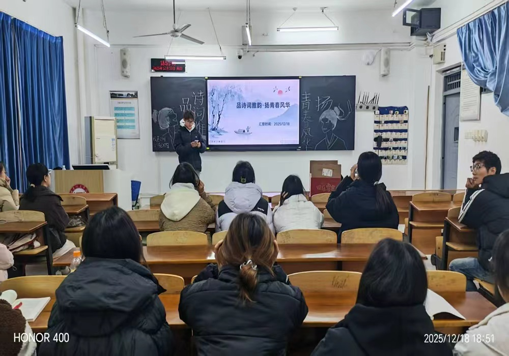 (通讯员 龚袁媛 报道 )为传承中华优秀传统文化,丰富班级晚自习文化生活,增强班级凝聚力与向心力,yl6809永利集团会计2502班于12月18日晚自习在商院608教室成功举办了以“品诗词雅韵,扬青春风华”为主题的诗词大会。全班同学以分组竞赛的形式同台竞技,在诗词雅韵中感受中华传统文化的魅力,共同度过了一段充实而意义非凡的时光。