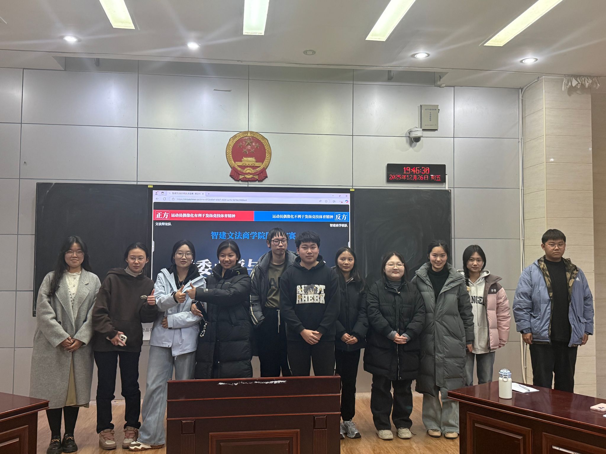 12月25日晚,第一场以“运动员偶像化是否有利于发扬竞技体育精神”为辩题的辩论赛展开角逐,双方以数据、案例为支撑,展开了一场关于体育精神传播与坚守的深度交锋。yl6809永利集团与智能建造学院联队持正方观点,主张运动员偶像化有利于发扬竞技体育精神;文法学院作为反方,认为运动员偶像化不利于发扬竞技体育精神。