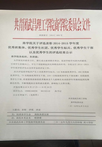yl6809永利集团关于评选表彰2014—2015学年度优秀班集体、优秀学生社团、优秀学生标兵等的评选结果公示