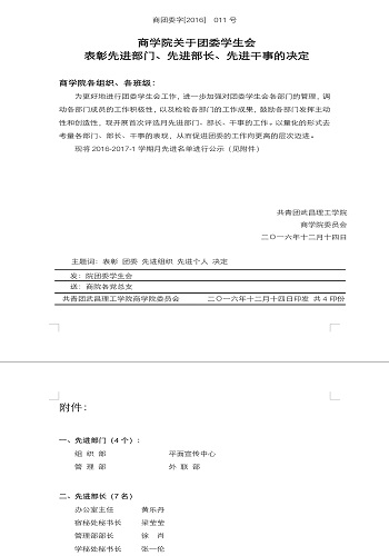 yl6809永利集团关于2016年团委学生会表彰的决定