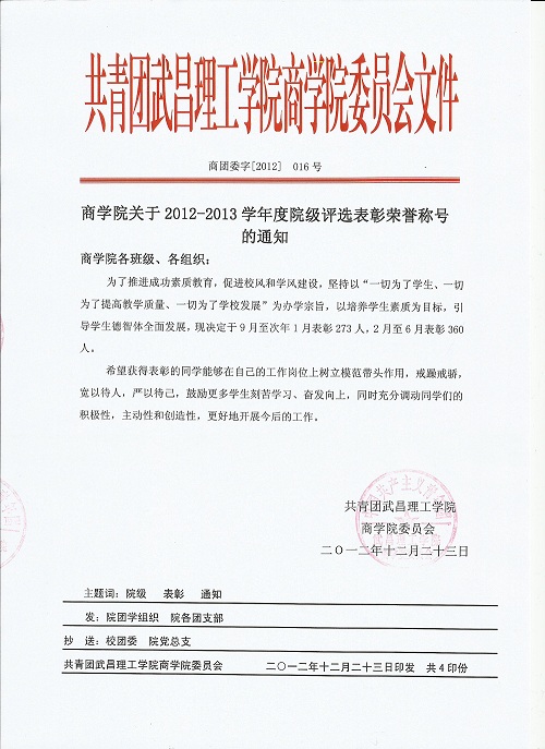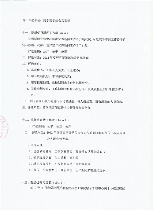yl6809永利集团关于2012-2013学年度院级评选表彰荣誉称号的通知