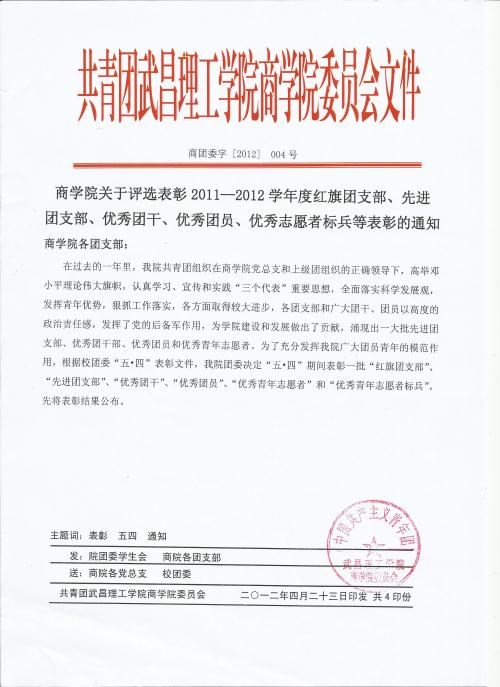 yl6809永利集团关于2012五四表彰通知