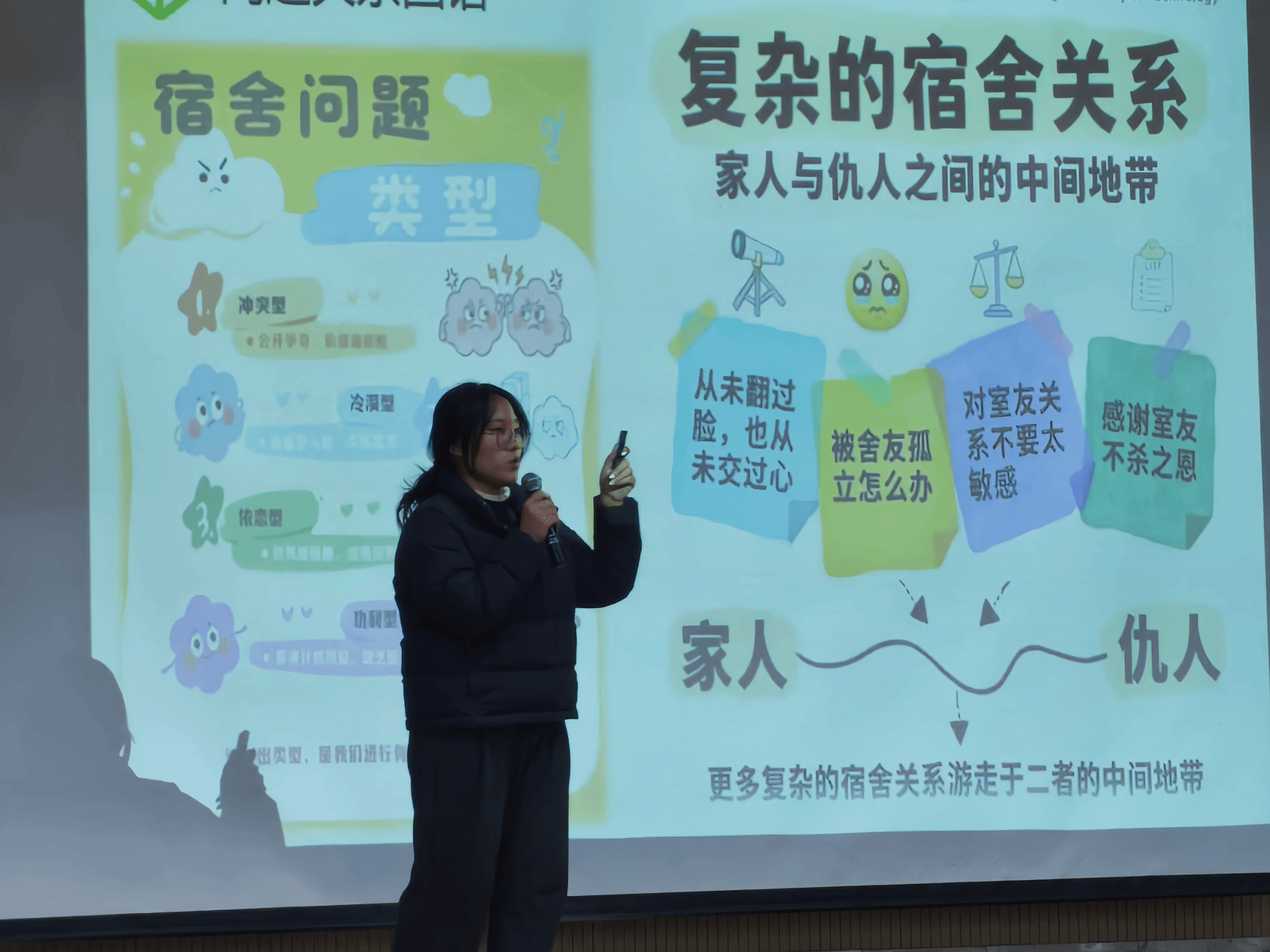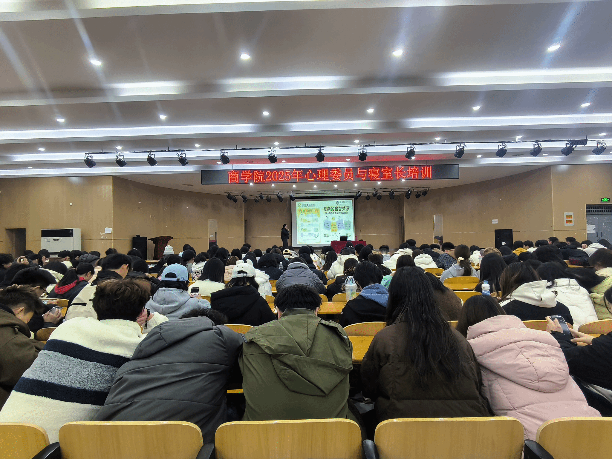 活动围寝室长在心理工作中的定位与职责、常见寝室心理问题应对策略、基本助人技巧分享三个主题展开,引导参与学生联系实际寝室生活场景,学习观察同学心理动态、化解人际矛盾、营造和谐氛围的方法。活动现场互动积极,氛围温馨,参会人员普遍反映对心理工作的理解更为深入。