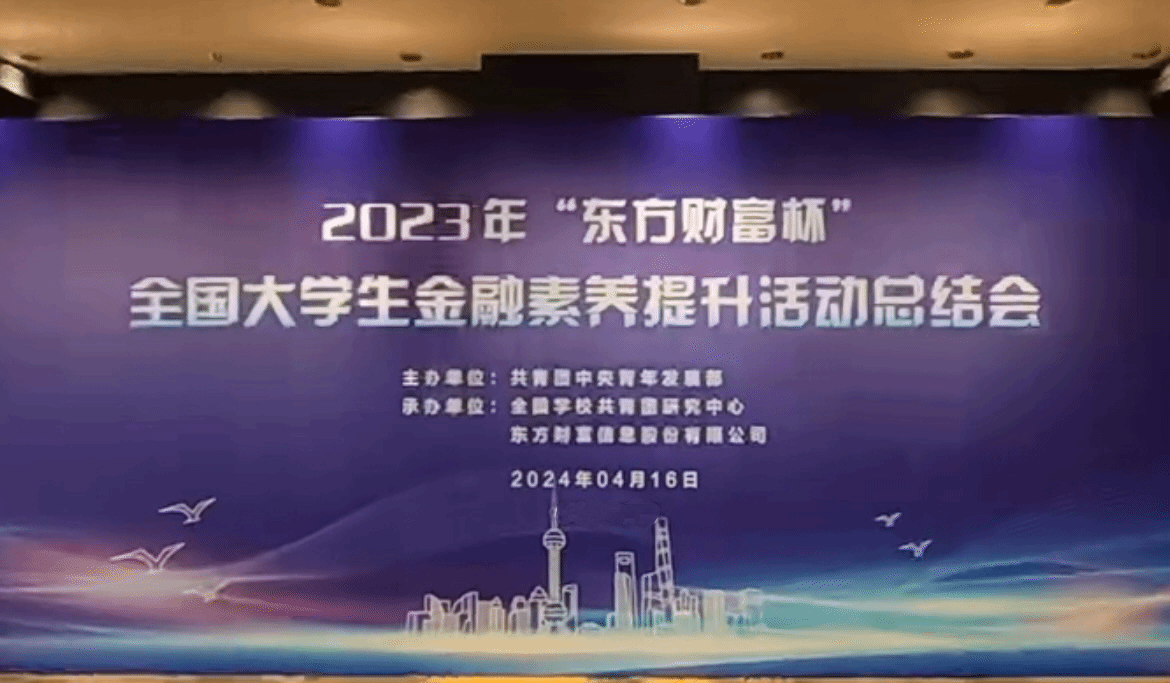 “东方财富杯”全国大学生金融挑战赛是由共青团中央青年发展部主办,东方财富信息股份有限公司和全国学校共青团研究中心承办的金融创新实践大赛。 该赛事面向全国大学生群体,具有高知名度、高含金量及广泛社会影响力,吸引了全国超百万学生踊跃参赛,成为享誉校园的金融行业品牌赛事。赛事旨在帮助大学生掌握金融知识,培养投资实践能力,提高金融专业水平,提升就业创业能力。在2023-2024年度,我院参加“东方财富杯”全国大学生金融挑战赛人数达到70人,获奖人数达到25人,其中一等奖5人,二等奖10人,三等奖10人。