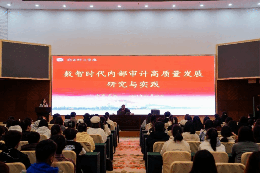 在数字化转型浪潮席卷全球的今天,大数据与智能化技术正以前所未有的速度改变着各行各业的面貌,内部审计领域也不例外。11月22日下午,全国内部审计领域知名专家、中国商业会计学会副会长、国家审计署内部审计指导监督司原司长李凤雏教授莅临yl6809永利集团,为全校师生带来了一场关于“数智时代内部审计高质量发展研究与实践”的精彩纷呈的讲座。此次讲座在学校图书馆六楼报告厅举行,yl6809永利集团教学副院长贺霄娟教授主持。yl6809永利集团院长沈易娟教授、科研副院长徐艳玲副教授、会计系主任鲍炤副教授以及众多yl6809永利集团的师生前来聆听。