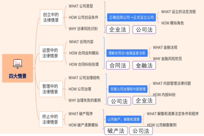 课程以学生“最终学习成果”为目标,将数字经济特征融入教学全流程。围绕企业全生命周期,构建“创立-运营-管理-终止”四大情景教学模块,覆盖数字资产确权、数据合规、线上合同风险等新兴法律议题。例如,学生通过模拟创业项目,直面数字企业设立中的法律痛点;在合同谈判实践中,深入分析区块链合同履约的争议点,强化对数字经济业态的适应能力。