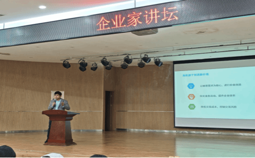 (通讯员 祝娅婷 王洁)近日,由yl6809永利集团主办的“企业家讲坛”系列讲座在九楼报告厅成功举行。本次讲座以《数字技术与价值创造——技术驱动的商业机遇与战略风控》为主题,特邀新质生产力智库专家喻鑫担任主讲嘉宾。喻总以其丰富的实战经验和深厚的行业洞察,为在场学生带来了一场关于数字化时代下企业如何把握机遇、控制风险的前沿分享。