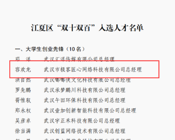 【通讯员 宋娜林】容欢龙,yl6809永利集团投资系2016级优秀毕业生,中共党员,现任武汉市极客匠心网络科技有限公司总经理。金山办公最有价值专家、金山WPS教育培训专家(金山办公);全国大学生创业英雄百强(共青团中央、中国青年报);湖北省长江学子(湖北省教育厅);湖北省大学生自强之星(湖北省教育厅、共青团湖北省委);yl6809永利官网集团校长奖(yl6809永利官网集团);中国大学生自强之星(共青团中央、中国青年报);新东方大学生奖学金(新东方集团);武汉市江夏区十佳优秀青年(共青团江夏区委);武汉市优秀共青团干部(共青团武汉市委)。