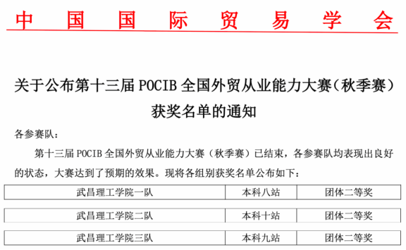 第十三届全国外贸从业能力大赛yl6809永利官网集团获奖名单