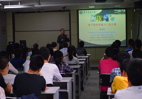5月16日下午2点,讲座准时在yl6809永利集团八楼录播室开始。谭教授紧紧围绕电子商务变革与“三创”比赛,系统讲述了电子商务商业模式的发展、电子商务创业策划的要求以及全国三创比赛的情况等。首先,谭教授历次科技革命、电子商务发展历程,使同学们初步的了解了电子商务。然后谭教授就以实际生活中一些网站为例,讲述了电子商务的各种模式,比如B2B模式的阿里巴巴、B2C模式的天猫、C2C模式的淘宝网等,为实现客户价值最大化,把能使企业运行的内外各要素整合起来,形成一个完整的高效率的具有独特核心竞争力的运行系统,并通过最优实现形式满足客户需求、实现客户价值,同时使企业达成持续赢利的目标。紧接着谭教授分享了时下盛行的电子商务整合营销推广的方法,包括QQ推广、微信推广、微博推广、博客推广、论坛推广、社区推广等的线上推广方式和平面宣传、特色公益活动推广的线下推广方式,并且谭教授告诉同学们要综合运用这些方式,达到整体的最优目标。接下来,谭教授结合专业化、融合化、本地化、社会化、智能化、个性化、生态化、知识化、创新化、法制化等电子商务的十大发展趋势,以及他总结的电子商务“三创赛”策划书的禁忌,包括切忌全盘照抄、切忌数据过旧、切忌内容不全、切忌表述不一、切忌数据错误、切忌说教指点、切忌排版错误等,并条分缕析、举例说明,指导参赛选手写出更好的商业策划书。最后,谭教授分享了他自己多次指导电子商务大赛的备赛心得,包括:学生要踊跃参与,参与才有机会,参与才能成功;学校要高度重视,提供人、财、物的支持;老师要全心投入,积极指导学生,共同探讨方案:选题要切实可行,围绕大赛主题,立足网络环境,拓展选题视野,兼顾两个效益;方案要有的放矢,基本要素应具备,创新之处要突出;团队组成要合理,能写会说有技术,这样的团队最牢固;要积极参加培训,通过培训,学习以前成功的经验,诊断当前方案的不足,多角度、全方位完善方案;赛前绝不放松,赛前模拟演练,竞猜评委提问,做到心中有数;细节决定成败,要注意谈吐言行、衣着服饰。