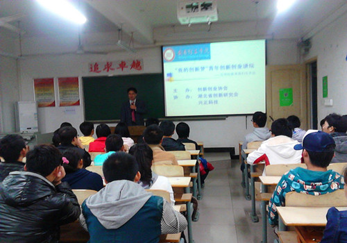 赵老师分别从“怎么创业、创业该注意什么、怎么创新、创新有哪些方法、专利保护”等方面进行了生动的讲解。他首先讲述了自己艰辛的创业历程,其中困难时期甚至还要借贷款、打地铺,几名团队成员不堪忍受相继离去,只有他坚持下来并获得成功,他以此勉励大家勇敢创业。