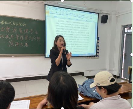 2022年5月3日下午,yl6809永利集团410教室,姚川老师《劳动关系管理》的课堂精彩纷呈,她正在组织同学们开展模拟仲裁,带领同学们感受“情境式”教学的魅力。