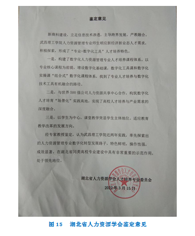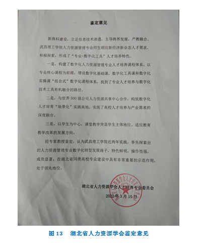 企业对数字化人才的需求日益增长,对数字化人才的要求也日益完善。加快数字化人才的培育,已成为全社会需要面临的当务之急。高校作为我国现代化建设视野的人才培养基地,需积极主动转型,为社会发展做好相应人才储备。我们将以湖北省试点改革学院、湖北省工商管理一流专业建设点为平台,以培养数字化人力资源应用型高级专门人才为目标,以产教深度融合为路径,优化跨专业跨学科教学资源,探索人力资源专业转型发展新思路,打造HR数字化人才培养特色,保持全省同类高校的领跑地位。
