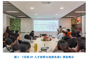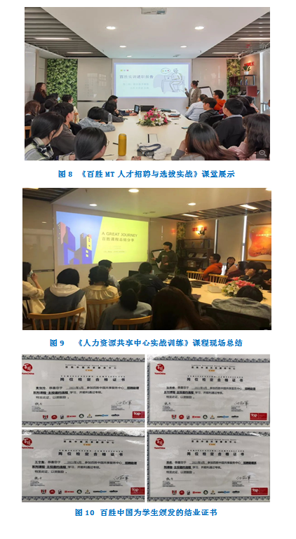 百胜中国共享服务中心作为专业人才培养的新平台,我们以数字化人才培养应用场景为目标,专设《百胜MT人才招聘与选拔实战》和《人力资源共享中心实战训练》两门数字化人才综合能力检测课程。将课堂搬到百胜中国共享服务中心。利用企业自有的人才测评系统、简历筛选系统、大数据分析软件等数字化软件对百胜提供的海量数据进行深入的数据分析,帮助学生构建数据逻辑和数据处理能力。这种通过学校与企业联合开课的方式,实行校企双导师制,提供企业真实业务场景,供学生实操学习,可以一方面将校内学习的理论与真实业务实操相结合,更好地理解理论知识,另一方面,也让学生提前感知社会实践与职场形态,为未来择业就业提供更好的体验和依据。