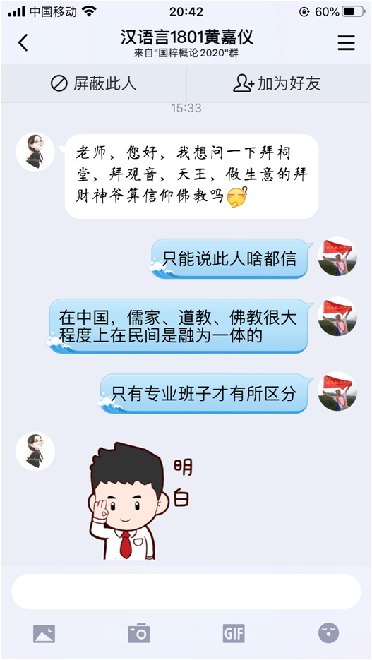 春节后开始筹划在线教学,开学前四周全力为通识课《国粹概论》(以下简称“《国》课”)而准备,第五周开始增加专业课《客源国概况》(以下简称“《客》课”),基于两门课程内容及教学对象的不同,一方面在知识体系的建构上进行区分,另一方面则是教学手段也进行了调整。从现有教学过程和教学效果而言,还是比较受学生欢迎,学生的整体反馈正面较多,这是对自己的极大鼓励吧!就个人体会而言,有如下几点。