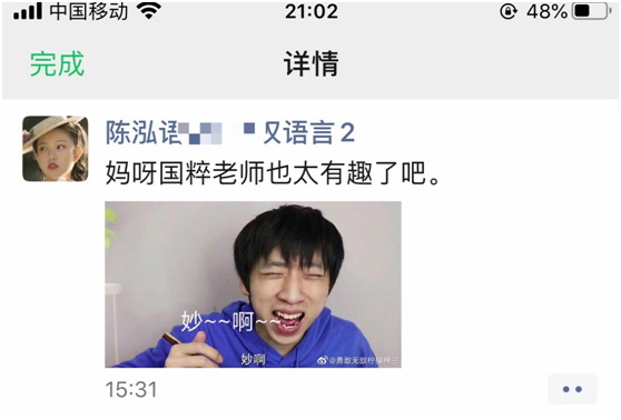 有些问题可能来自教学平台,本人开始习惯性地翻看,并第一时间处理;有些问题来自QQ或微信,也基本可以做到第一时间来回应。当然,仅仅回应是不够的,还要用心去了解问题产生的原因,有的是因为网络不畅而未听清楚,有的可能是对于录屏视频的讲解没有参透,有的则是进一步开拓了其他知识内容,这些问题有的需要马上回应,有的则会在后续的教学中加以补充,也是提醒自己在备课时更要广泛拓展。