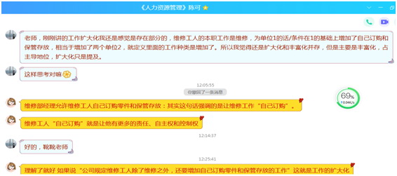 通过这几周《人力资源管理》课程线上教学的摸索,让我深感线上教学实践的不易。区别传统课程的“面对面”,在线上课堂中,我们无法看到每个学生的听课状态,因此需要我们更加用心进行课程流程设计、精心讲授课程内容、热心答疑解惑、留心学习反馈,达到最佳教学效果。