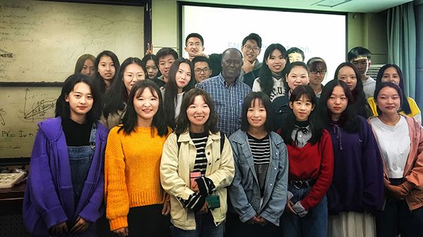 Sylla教授简单地介绍了自己的经历,他在美国完成了本硕博学习,生活工作均在美国。不同的文化背景和丰富的人生经历引起了学生的浓厚兴趣。在课堂上Sylla教授经常分享自己的学习生活经历给学生,让原本许晦涩难懂的课程变得生动有趣起来。