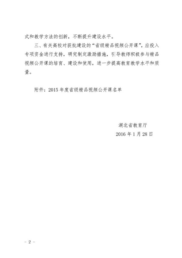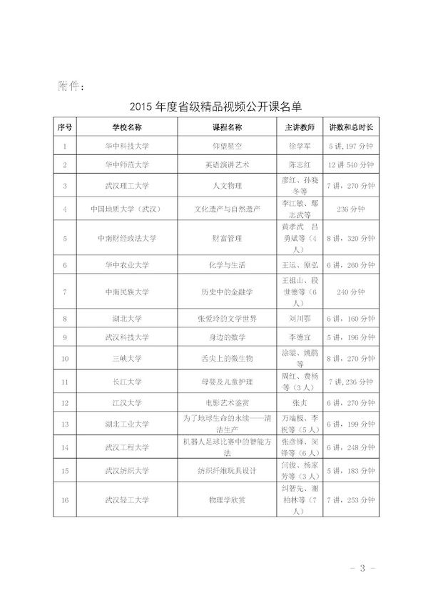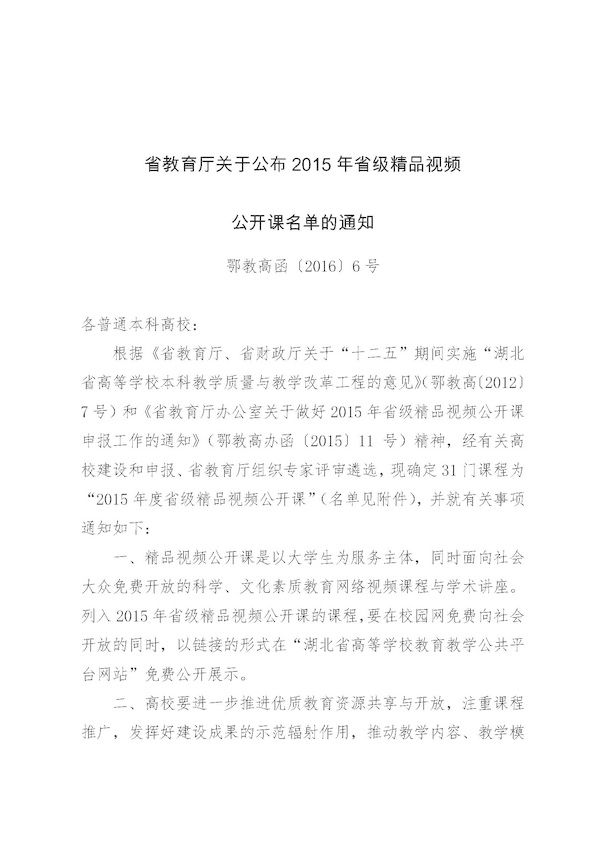 省教育厅关于公布2015年省级精品视频公开课名单的通知