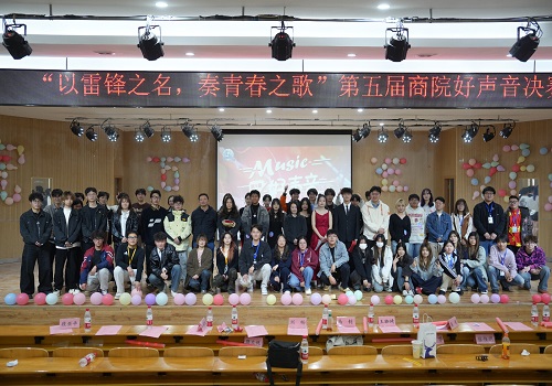 活动最后,各位领导、老师及工作人员上台合影留念,为本次“商院好声音”画上了圆满的句号。此次比赛不仅为学生们提供了展示音乐才华的舞台,更通过歌声传递了雷锋精神,激励着青年学子在新时代的征程中勇往直前、不断前行。