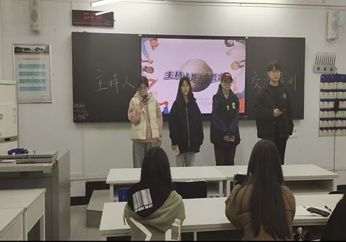 在即兴主持环节,四人组队模拟配合,随机抽取主题后迅速进入角色,展开实战演练。这一过程不仅有效锻炼了语言表达、思维反应和应变能力,还提升了团队协作能力。通过实践,同学们积累了经验,增强了自信。