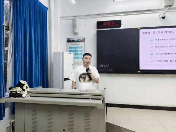 随后,国际处颜泽晨老师重点介绍了2025年暑期学校各个研学项目的目的地、学习内容及行程安排,帮助同学们全面了解不同项目的特色与优势,并向大家讲解了学校相关的学分奖励政策。同时,颜老师鼓励同学们根据自身专业背景和兴趣选择合适的项目,积极参与国际交流,不断拓展学术视野和实践能力。现场同学们反响热烈,纷纷表示对暑期研学充满期待。
