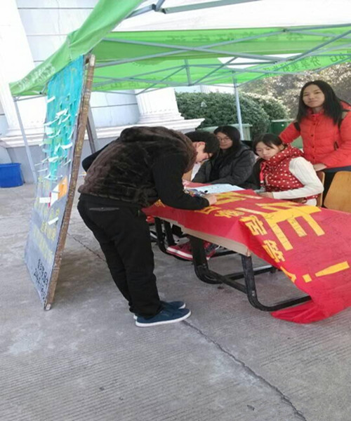 记者在现场看到,在“携手禁烟,共创文明寝室,远离烟草,崇尚健康”的横幅上已经写满了同学们的姓名,并且下课后,经过帐篷的同学都会停下脚步,在横幅上签上自己的名字,场面十分热闹。在宣传板上,每位同学各抒己见,男同学大多写着“兄弟们,我们不要做吸烟人”的愿望来劝说周围的男生不要吸烟,女同学们则写着“希望我身边的男同学不要吸烟,让我不要吸二手烟”的愿望来呼吁身边人不要吸烟,前来参加活动的学生火爆全场,迄今为止已有一百余人。