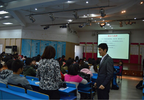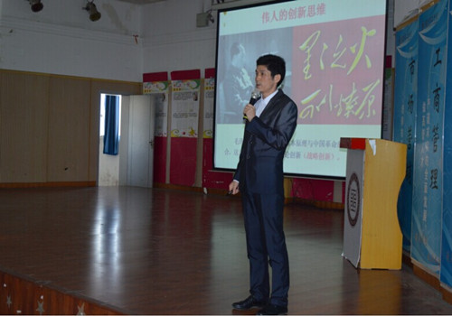 为了使演讲内容不落于教条化和枯燥,梁教授通过借助一张张PPT、幻灯片照片并列举邓小平同志改革开放制度的创新,胡锦涛同志的“科学发展观”理论的创新,以此去鼓励在场的大学生在校期间应有意识的去培养自己的创新思维,多去接触新鲜事物,并通过自己的创新去实践,去大胆尝试。唯有如此,才能在未来的诡谲职业场上立于不败之地,才能实现职场卓越,继而走向人生的成功。