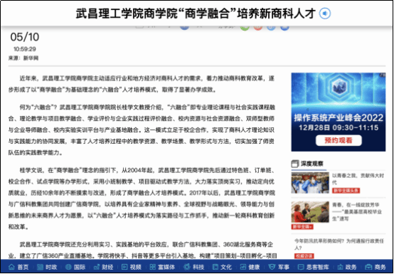 图3 2022年新华网报道我院商学融合培养新商科人才模式