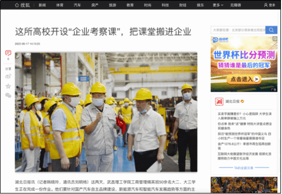 图4 2022年湖北日报、搜狐网等媒体报道我校工商管理精英班《企业考察》课程